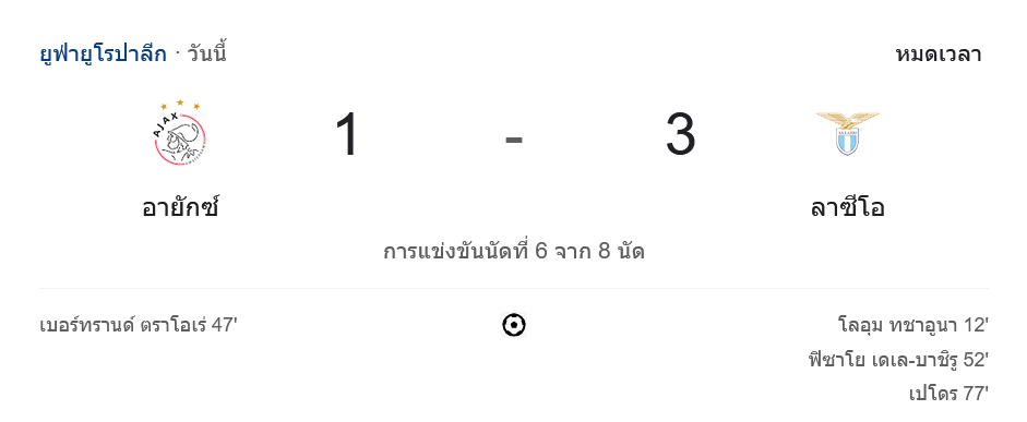 จาก : ผลบอลสด ยูฟ่ายูโรปาลีก 2024 ระหว่าง อาแจกซ์ อัมสเตอร์ดัม 1-3 ลาซิโอ วันนี้ 13/12/67 – บ้านกีฬา