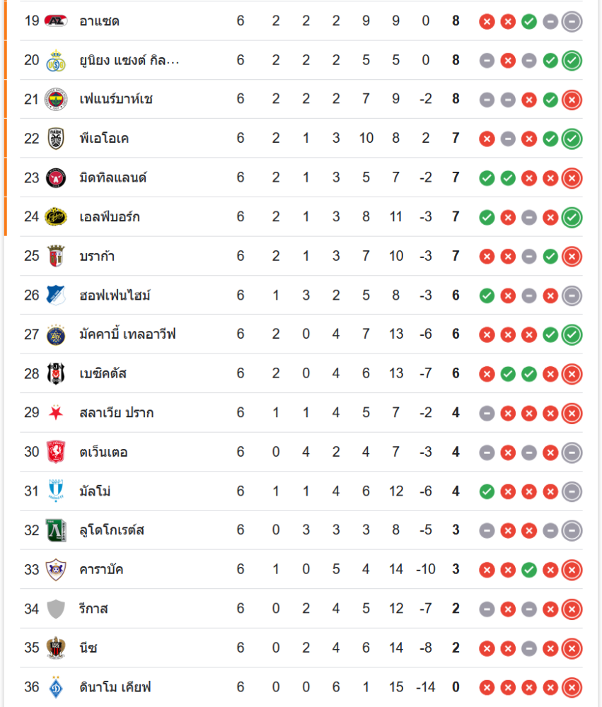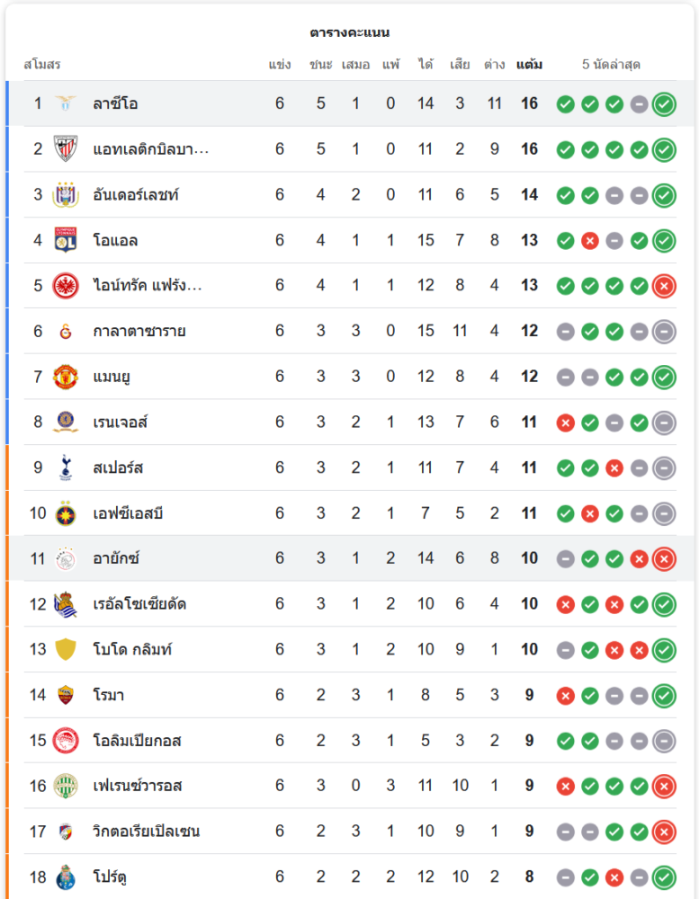ลาซิโอยึดตำแหน่งจ่าฝูงของกลุ่มด้วย 16 คะแนน จากการชนะ 5 เสมอ 1 ส่วนอาแจกซ์ยังคงอยู่ในสถานการณ์ยากลำบากและต้องเร่งเก็บแต้มในนัดต่อไป