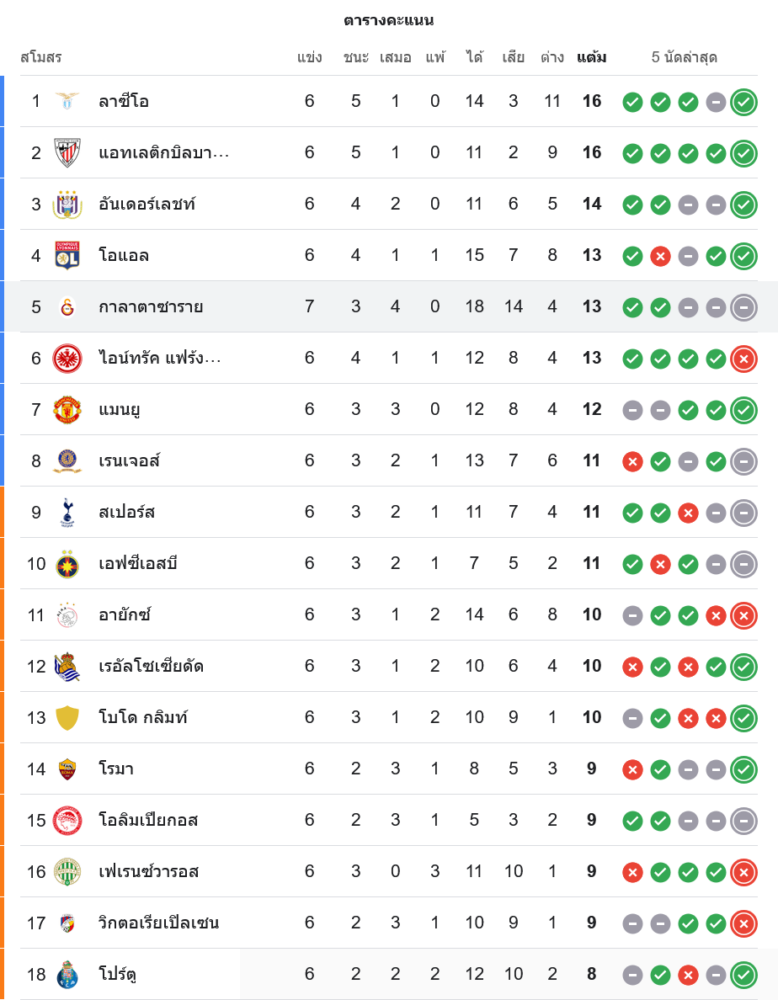 สถานการณ์ในตารางคะแนน