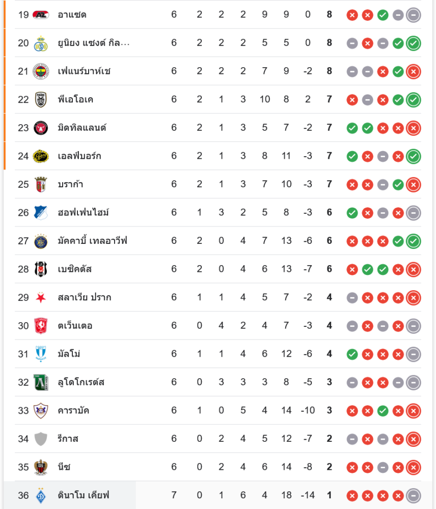 กาลาตาซาราย อยู่ อันดับ 5 ของกลุ่ม มี 13 คะแนน ขณะที่ ดินาโม เคียฟ รั้งท้ายตารางอันดับ 36 มีเพียง 1 คะแนน โอกาสเข้ารอบของเคียฟแทบจะหมดไปแล้ว