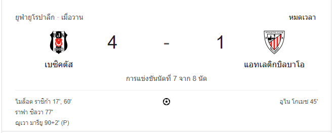 นาทีที่ 95: กรรมการเป่านกหวีดจบเกม เบซิคตัสเอาชนะแอธเลติก คลับ 4-1 อย่างยอดเยี่ยม