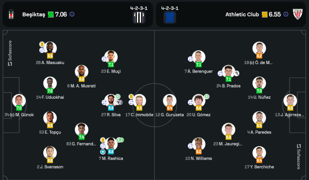 เบซิคตัสจัดแผน 4-2-3-1 ที่เน้นเกมรุกเป็นหลักโดยใช้ ราชิก้า และ ซิลวา เป็นตัวทะลวงแนวรับของบิลเบา พร้อมให้ อิมโมบิเล่ เป็นหน้าเป้า การประสานงานแดนกลางแน่นแฟ้นทำให้ครองเกมได้มากกว่าและสร้างโอกาสจบสกอร์ได้ดี ขณะที่ บิลเบา แม้จะครองบอลได้มากกว่า แต่การเล่นเกมรับหลวมเกินไป เปิดโอกาสให้เจ้าบ้านโจมตีได้อย่างต่อเนื่อง ส่งผลให้พ่ายแพ้ไปในที่สุด วิเคราะห์บอล ของเกมนี้บอกชัดว่าเกมรุกของเบซิคตัสมีประสิทธิภาพสูงกว่าทีมเยือน