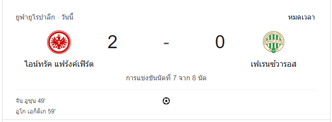 นาทีที่ 96: กรรมการเป่านกหวีดจบเกม แฟรงก์เฟิร์ตเอาชนะเฟเรนซ์วารอซไปด้วยสกอร์ 2-0