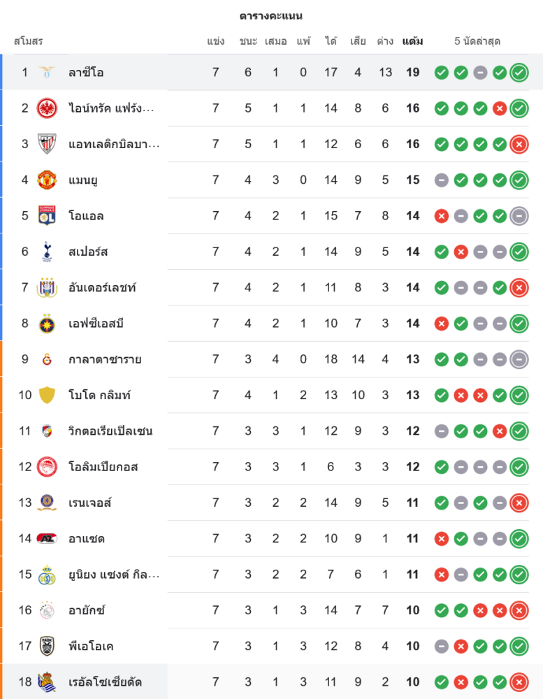 ชัยชนะนัดนี้ทำให้ ลาซิโอ ยังคงนำเป็นจ่าฝูงของกลุ่ม โดยมี 19 คะแนนจาก 7 นัด ส่วน เรอัล โซเซียดาด หล่นไปอยู่โซนท้ายตาราง มีเพียง 10 คะแนนจาก 7 นัด