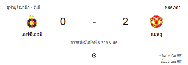 นาทีที่ 98: กรรมการเป่านกหวีดจบเกม แมนเชสเตอร์ ยูไนเต็ดเอาชนะ FCSB 2-0 คว้าชัยชนะไปได้อย่างยอดเยี่ยม