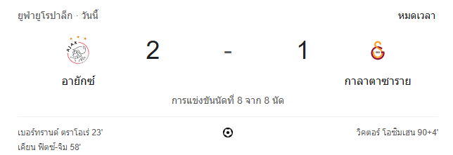 จบเกม: อาแจกซ์ 2-1 กาลาตาซาราย