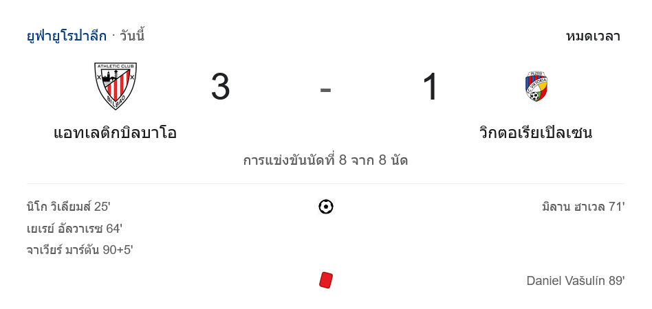 ก่อนหมดเวลา 90+5 บิลเบาปิดเกมด้วยประตูของ ฆาเบียร์ มาร์ตอน จบเกม แอธเลติก บิลเบา เอาชนะ วิคตอเรีย พัลเซ่น 3-1 คว้าชัยสุดมันส์!