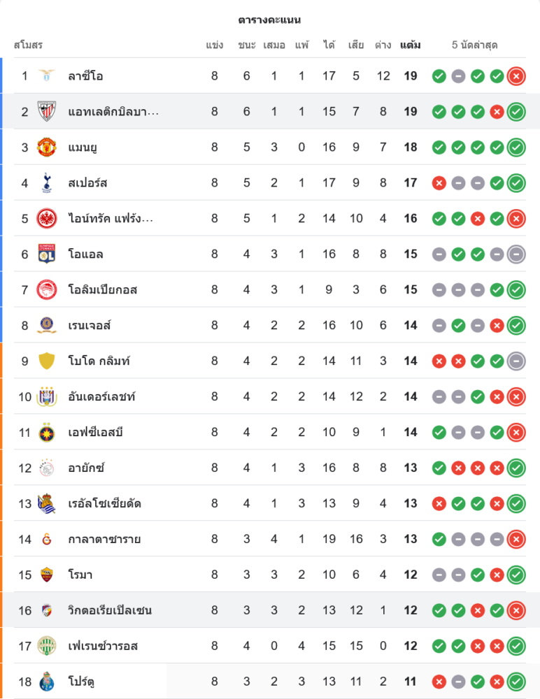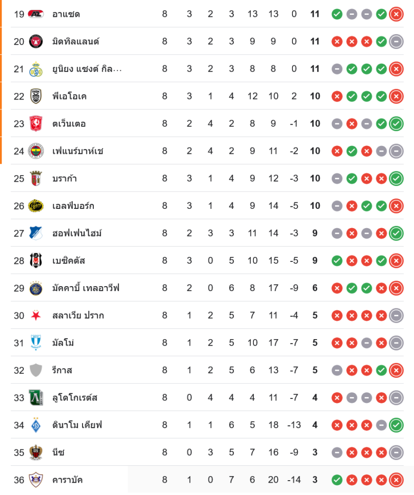 บิลเบาขยับขึ้นอันดับ 2 ของกลุ่ม มี 19 คะแนนจาก 8 นัด ส่วนพัลเซ่นยังจมท้ายกลุ่ม โอกาสเข้ารอบริบหรี่