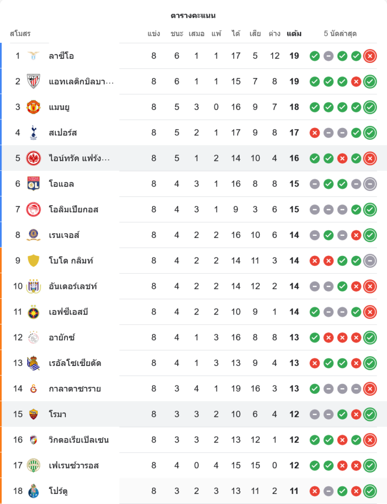 โรม่าเก็บเพิ่มเป็น 12 คะแนน จาก 8 นัด ขยับขึ้นมาลุ้นพื้นที่เข้ารอบ ในขณะที่ แฟร้งค์เฟิร์ต มี 16 คะแนน ยังคงอยู่ในกลุ่มหัวตาราง