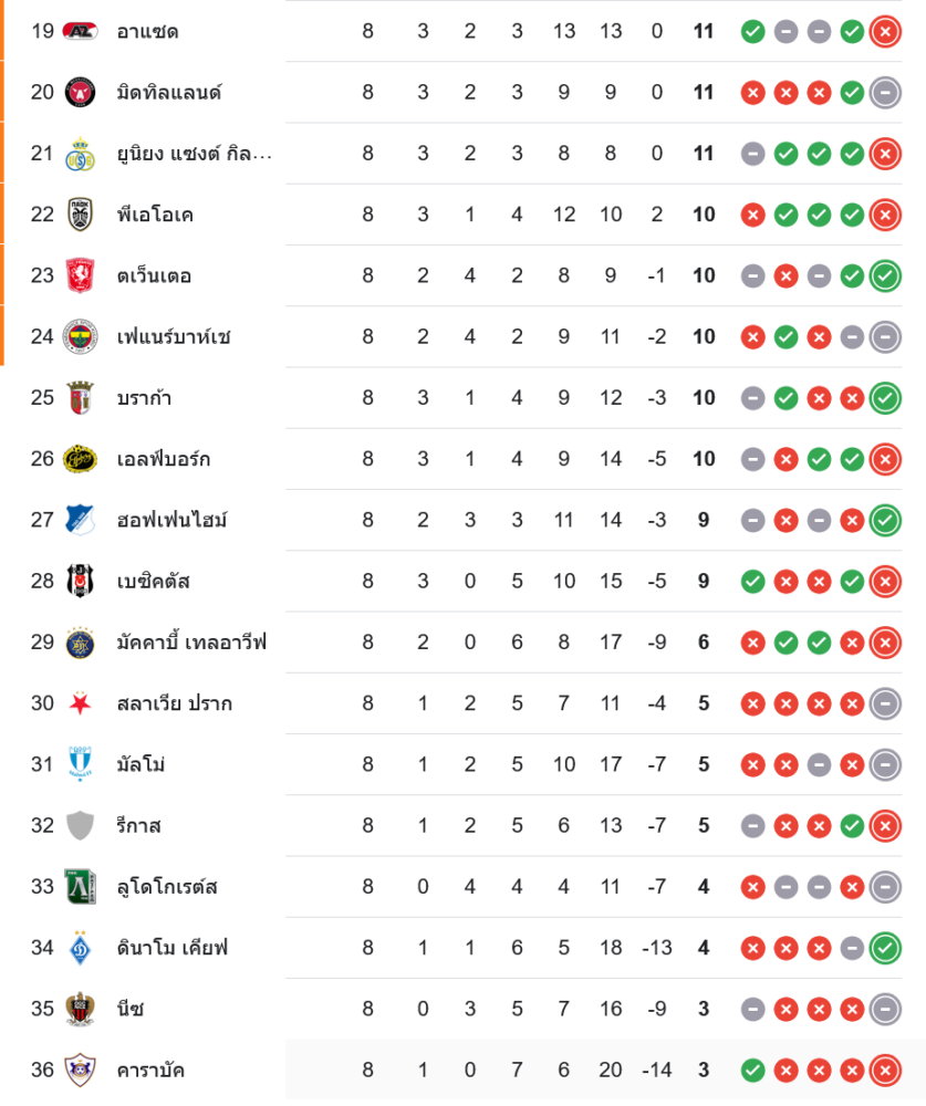 สถานการณ์ในตารางคะแนน