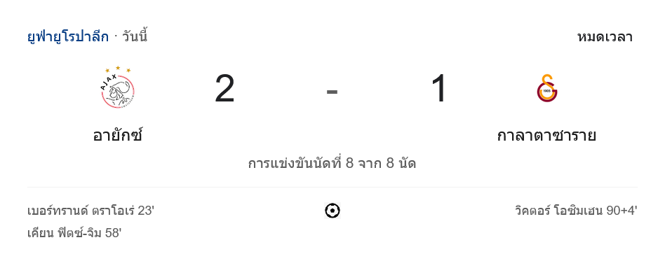 จาก : ผลบอลสด ยูฟ่ายูโรปาลีก 2024 ระหว่าง อาแจกซ์ อัมสเตอร์ดัม 2-1 กาลาตาซาราย วันนี้ 31/1/68 – บ้านกีฬา