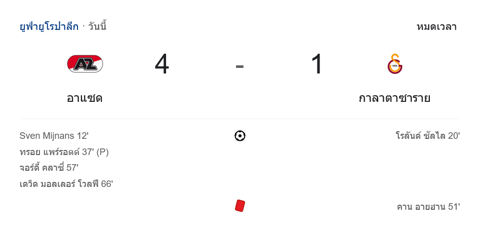 ศึก ยูฟ่ายูโรปาลีก 2024 นัดสำคัญระหว่าง อาแซ่ด อัลค์มาร์ และ กาลาตาซาราย จบลงด้วยชัยชนะสุดยิ่งใหญ่ของเจ้าถิ่นที่เปิดบ้านไล่ถล่มทีมจากตุรกีแบบขาดลอย 4-1 เกมนี้เต็มไปด้วยความดุเดือด โดยมีใบแดงเกิดขึ้น และจังหวะเข้าทำที่เฉียบขาดจากเจ้าบ้าน ซึ่งเล่นกันได้อย่างยอดเยี่ยม บ้านกีฬา พร้อมสรุปทุกประเด็นสำคัญของเกมนี้ พร้อม ผลบอลสด และข้อมูลเชิงลึกที่คุณไม่ควรพลาด!