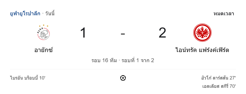 เกมยูฟ่ายูโรปาลีก 2024 ระหว่าง อาแจกซ์ อัมสเตอร์ดัม และ ไอน์ทรัค แฟรงเฟิร์ต จบลงด้วยความดุเดือดเมื่อทีมเยือนจากเยอรมนีบุกมาคว้าชัย 2-1 ทำให้การแข่งขันเลกที่สองยังคงเปิดกว้างและเข้มข้นอย่างยิ่ง นี่คือแมตช์ที่แฟนบอลต้องจับตามองอย่างใกล้ชิด โดยเฉพาะกับฟอร์มการเล่นของทั้งสองทีมที่แสดงให้เห็นถึงความมุ่งมั่นและทักษะสูงในทุกจังหวะ