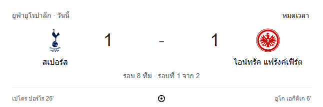 - จบเกม: ท็อตแน่ม ฮ็อตสเปอร์ เสมอ ไอน์ทรัค แฟรงเฟิร์ต 1-1