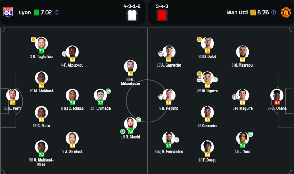เกมนี้ โอลิมปิก ลียง ภายใต้การคุมทีมของ เปาโล ฟอนเซก้า มาในระบบ 4-3-1-2 เน้นครองบอลและต่อบอลกลางสนามให้แน่น ส่วนฝั่ง แมนเชสเตอร์ ยูไนเต็ด ของ รูเบน อโมริม ใช้แผน 3-4-3 โดยมี บรูโน่ แฟร์นันด์ส เป็นหัวใจเกมรุกและ ราสมุส ฮอยลุนด์ ยืนหน้าเป้า