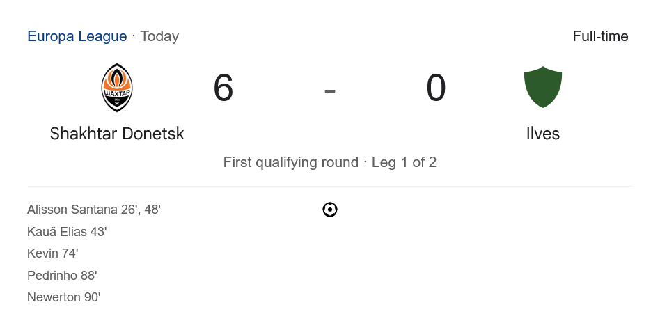 บ้านผลบอล รายงานผลศึกยูฟ่ายูโรปาลีก รอบคัดเลือกเลกแรก เมื่อคืนที่ผ่านมา ชัคห์ตาร์ โดเน็ตส์ก เปิดบ้านระเบิดฟอร์มดุดัน ไล่ถล่ม อิลเวส จากฟินแลนด์แบบไม่ไว้หน้า 6-0 กุมความได้เปรียบมหาศาลก่อนเกมเลกสอง