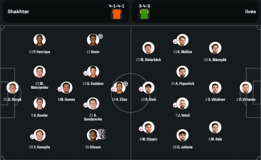 เกมนี้ ชัคห์ตาร์มาในระบบ 4-1-4-1 ที่เปิดเกมรุกตั้งแต่ต้น ไล่เพรสซิ่งสูงและต่อบอลรวดเร็ว ความหลากหลายในแนวรุกทำให้กองหลังอิลเวสรับมือไม่ทัน ขณะที่อิลเวสใช้ 3-4-3 พยายามแพ็คเกมตรงกลางแต่โดนเจาะริมเส้นซ้ำๆ การวิเคราะห์บอลจากบ้านกีฬาเห็นว่าความแตกต่างเชิงคุณภาพผู้เล่นและความเข้มข้นของเกมรุกคือปัจจัยสำคัญที่ทำให้สกอร์ขาดลอย