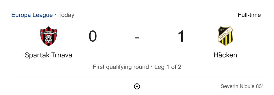 บ้านผลบอล รายงานผลยูฟ่ายูโรปาลีก รอบคัดเลือกเลกแรกเมื่อคืนนี้ ฮัคเค่น บุกสโลวาเกียเฉือนชนะ สปาร์ตัก เทอร์นาว่า 1-0 ด้วยสกอร์ที่ทำให้พวกเขากุมความได้เปรียบก่อนกลับไปเล่นในบ้านอย่างเข้มข้น เกมนี้เป็น Severin Nioule ที่กลายเป็นฮีโร่ซัดประตูโทนในนาที 63 พาทีมเก็บชัยชนะนัดสำคัญได้สำเร็จ