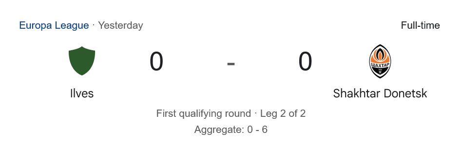 แม้ผลเสมอในบ้านทำให้แฟนอิลเวสได้เฮเล็กๆ แต่ผลรวมสองนัดแพ้ 0-6 ทำให้พวกเขาตกรอบไปเรียบร้อย ส่วน ชักตาร์ ลิ่วสู่รอบต่อไปของยูฟ่ายูโรปาลีกอย่างไร้กังวล