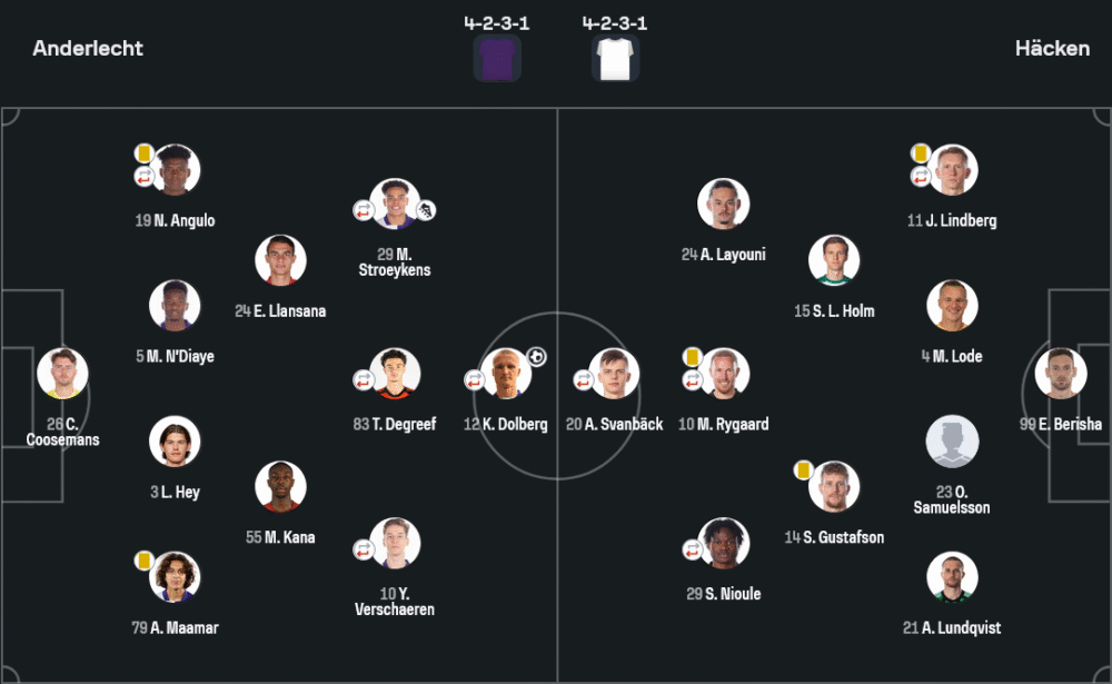 แม้จะไม่มีสถิติเจาะลึกให้เห็นในรูปแบบเต็ม แต่จากเกมที่เกิดขึ้น อันเดอร์เลชท์ครองบอลได้เหนือกว่าชัดเจนในช่วงครึ่งแรก และมีจังหวะเข้าทำมากกว่า โดยเฉพาะฝั่งซ้ายที่ อังกูโล่ และ มาอามาร์ เติมเกมได้ต่อเนื่อง ขณะที่ฮัคเค่นแม้พยายามไล่เพรสซิ่งในแดนกลางแต่ยังทำได้ไม่ต่อเนื่อง การจบสกอร์ยังห่างไกลจากความเฉียบขาดที่จำเป็นในเวทียุโรป