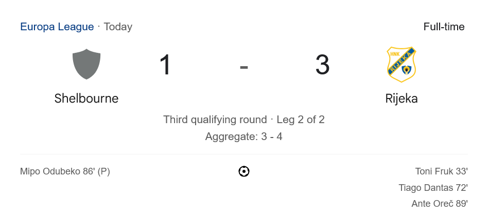 ชัยชนะนัดนี้ทำให้ริเยก้าผ่านเข้ารอบเพลย์ออฟยูฟ่ายูโรปาลีกด้วยสกอร์รวม 4-3 ส่วนเชลบอร์นต้องไปเล่นในยูโรปาคอนเฟอเรนซ์ลีก ซึ่งถือเป็นการพลาดโอกาสสำคัญในเส้นทางยุโรป