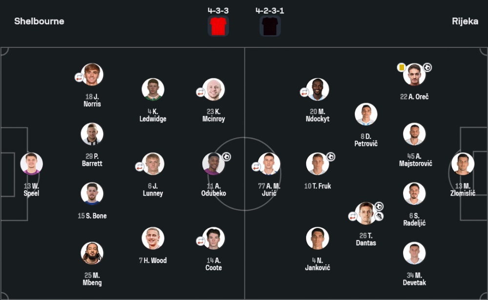 เชลบอร์นใช้แผน 4-3-3 เน้นบุกริมเส้นและเปิดบอลเข้ากรอบเขตโทษ แต่การรับมือกับการสวนกลับของริเยก้ากลับมีช่องโหว่ โดยเฉพาะพื้นที่ระหว่างเซ็นเตอร์และฟูลแบ็ก ริเยก้าเล่นด้วยระบบ 4-2-3-1 ซึ่งมีความสมดุลสูง แดนกลางคุมจังหวะได้ดี และใช้การเคลื่อนที่ของแนวรุกอย่าง ฟรัก และ ดานตาส เจาะแนวรับเจ้าถิ่นอย่างต่อเนื่อง การเปลี่ยนเกมจากรับเป็นรุกใช้เวลาน้อย ทำให้จังหวะสวนกลับมีประสิทธิภาพสูง
