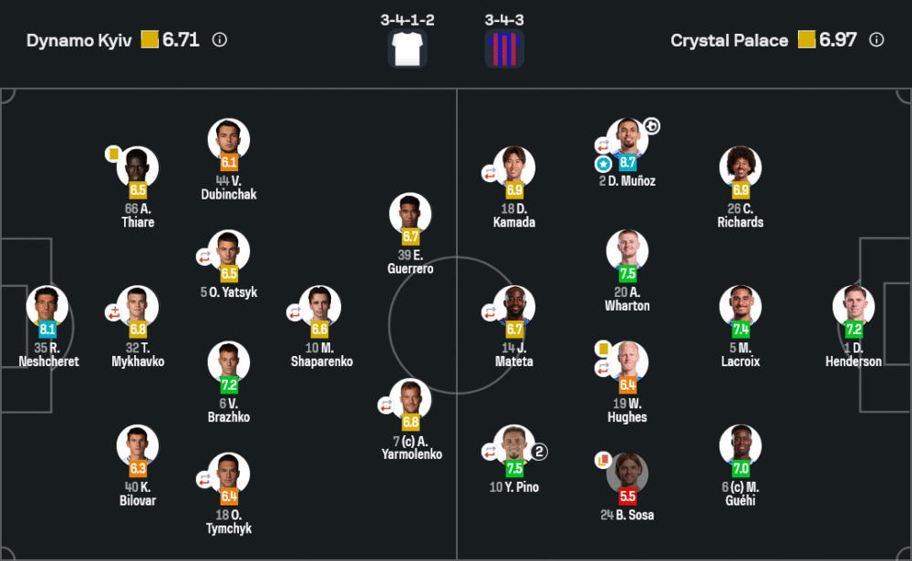 ขณะที่ ดินาโม เคียฟ ใช้ระบบ 3-4-1-2 เน้นรัดกุมและโต้กลับ แต่ปัญหาคือการจบสกอร์ที่ไร้ประสิทธิภาพ ยิงทั้งหมด 5 ครั้งแต่ไม่ตรงกรอบแม้ครั้งเดียว แม้ครองบอลได้ 43% แต่ไม่มีจังหวะเข้าทำที่หวังผลได้ ทำให้รูปเกมโดยรวมเป็นรองตลอดทั้งแมตช์ จากมุมมอง บ้านกีฬา นี่คือเกมที่ “พาเลซ” แสดงให้เห็นถึงสมดุลทั้งรุกและรับแบบครบเครื่อง ถือเป็นชัยชนะที่สมบูรณ์แบบตามตำราการ วิเคราะห์บอล ระดับยุโรป
