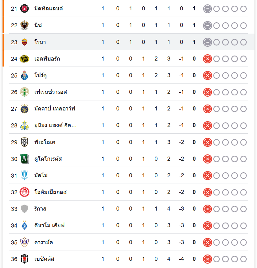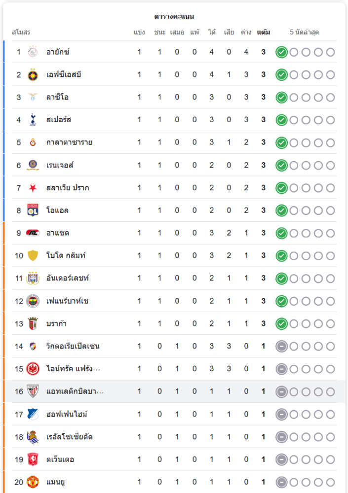 สถานการณ์ในตารางคะแนน: จากผลเสมอในนัดนี้ โรม่า อยู่ในอันดับที่ 23 ของตารางคะแนน ยูฟ่ายูโรปาลีก หลังจบการแข่งขันนัดแรก ขณะที่ แอธเลติก บิลเบา อยู่อันดับที่ 16 โดยทั้งสองทีมเก็บได้เพียง 1 คะแนน