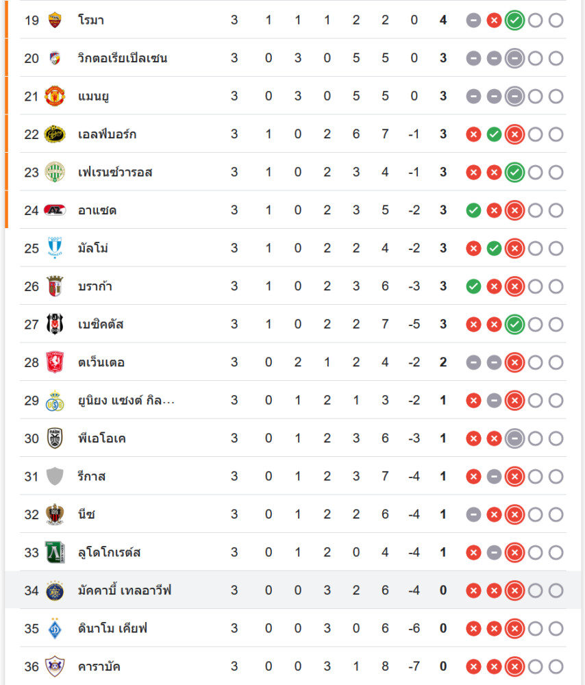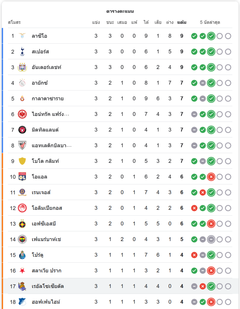 สถานการณ์ในตารางคะแนน