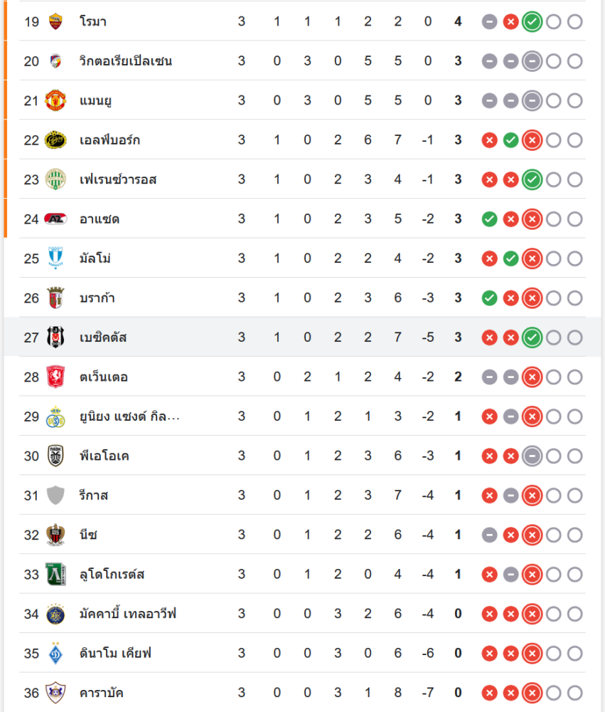 ชัยชนะครั้งนี้ทำให้ เบซิคตัส เจเค เก็บ 3 แต้มแรกของฤดูกาลได้สำเร็จ ขยับขึ้นมาอยู่อันดับที่ 27 ในขณะที่ โอลิมปิก ลียง ยังคงอยู่อันดับที่ 10 ของตารางคะแนน โดยมี 6 คะแนนจาก 3 นัด
