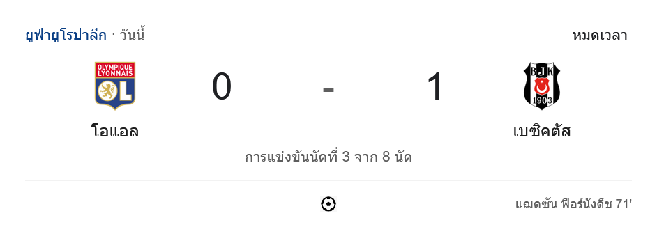 เบซิคตัส บุกเฉือน โอลิมปิก ลียง 1-0 ยูฟ่ายูโรปาลีก 2024