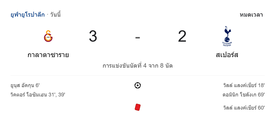 - ⚽ นาทีที่ 31 และ 39: วิกตอร์ โอซิมเฮน ยิงสองประตูให้กาลาตาซารายนำห่าง 3-1