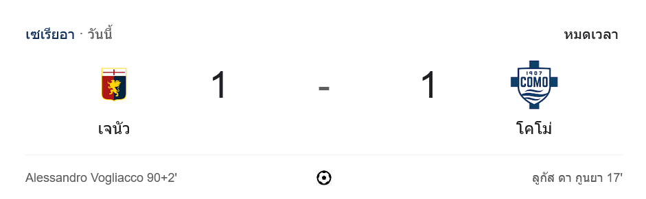 เจนัวไล่ตีเสมอ โคโม 1-1 สุดมันส์ในช่วงทดเจ็บ เซเรียอา 2024
