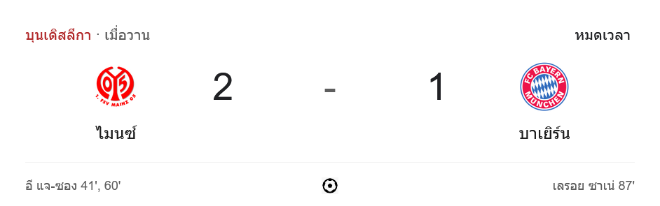 จาก : ผลบอลสด บุนเดสลีกา 2024 ระหว่าง เอฟเอสเฟา ไมนซ์ 05 2-1 บาเยิร์น มิวนิค วันนี้ 14/12/67 – บ้านกีฬา