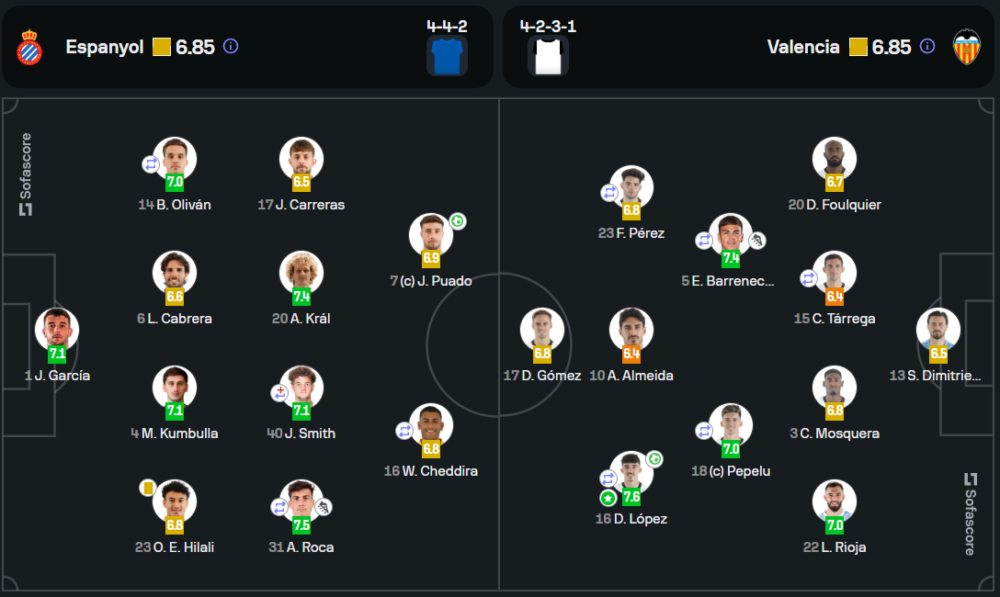 ดิเอโก้ โลเปซ ของบาเลนเซียคือผู้เล่นยอดเยี่ยมในเกมนี้ ด้วยการทำประตูสำคัญและการมีส่วนร่วมในเกมรุก คะแนนรวม 7.6 ถือเป็นหัวใจสำคัญของทีม