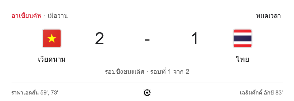 เวียดนามได้เปรียบในการเล่นเลกสองจากการชนะในบ้าน ขณะที่ไทยต้องกลับไปปรับแผนเพื่อลุ้นแชมป์ในเกมถัดไป