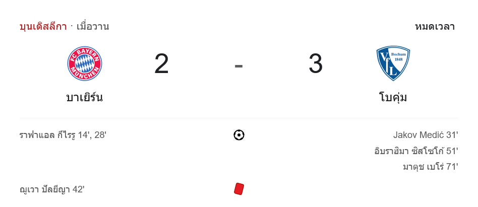 บ้านผลบอล สรุปหลังเกม บุนเดสลีกา 2024 ช็อกทั้งลีก! บาเยิร์น มิวนิค พลิกล็อคคารังพ่าย โบคุ่ม สุดระทึก 2-3
