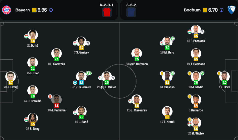 กองหลัง: ซาช่า โบอี้ (โยชัว คิมมิช 76′), โยซิป สตานิซิช, เอริค ดายเออร์, ฮิโรกิ อิโตะ
