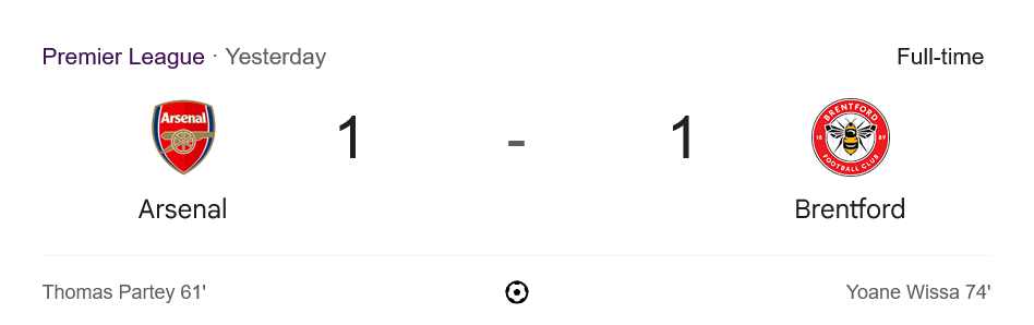 ⏱️ จบเกม: อาร์เซนอล 1-1 เบรนท์ฟอร์ด