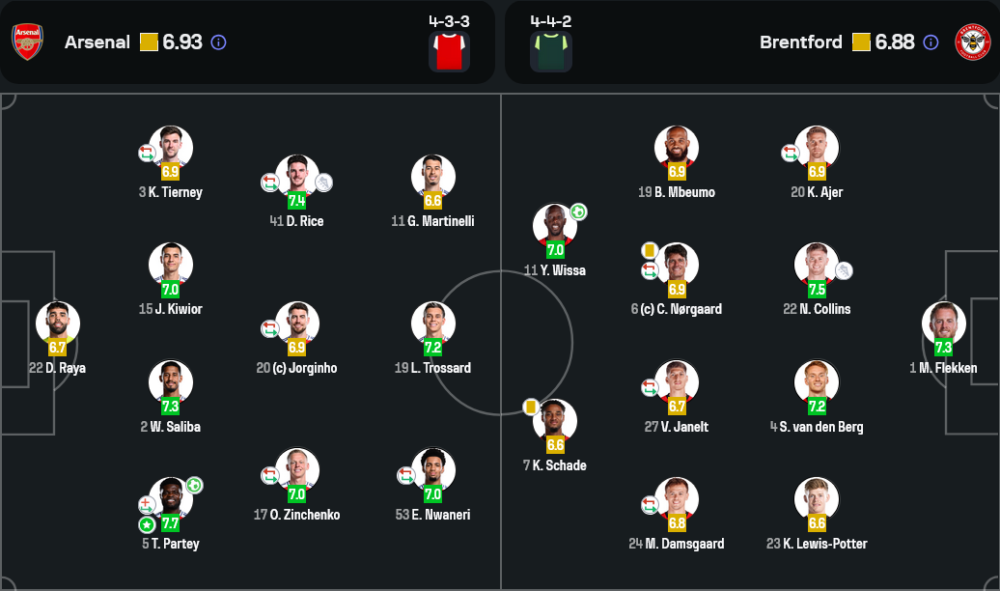 ในมุมมองของ วิเคราะห์บอล เกมนี้ อาร์เซนอลจัดระบบ 4-3-3 ที่เน้นการครองบอลและต่อบอลสั้นในแดนกลาง โดยมีจอร์จินโญ่และไรซ์คอยคุมจังหวะเกม ขณะที่แบ็กสองฝั่งเติมเกมรุกได้อย่างมีประสิทธิภาพ แต่ปัญหาหลักยังคงเป็นจังหวะจบสกอร์ที่ขาดความเฉียบขาด ขณะที่ เบรนท์ฟอร์ดมาในระบบ 4-4-2 เน้นเกมตั้งรับลึกและรอสวนกลับ ซึ่งพวกเขาทำได้อย่างมีประสิทธิภาพ โดยเฉพาะแนวรับที่ยืนตำแหน่งดีและผู้รักษาประตูเฟล็กเค่นที่เซฟสำคัญหลายครั้ง ความแตกต่างของแผนเห็นได้ชัดว่า เบรนท์ฟอร์ดมีเป้าหมายเล่นเพื่อแต้มเดียว ขณะที่อาร์เซนอลต้องการสามแต้มแต่ขาดความเด็ดขาด