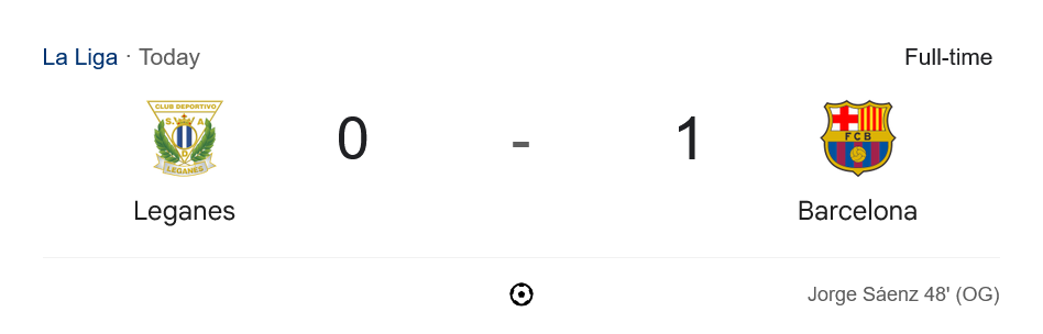 เริ่มครึ่งหลังได้เพียง 3 นาที วิเคราะห์บอลวันนี้ ความผิดพลาดครั้งใหญ่ของเลกาเนสก็เกิดขึ้น เมื่อ ฆอร์เก้ ซาเอนซ์ กองหลังเจ้าบ้านสกัดบอลพลาดเข้าประตูตัวเองอย่างเหลือเชื่อ ส่งให้บาร์ซ่าขึ้นนำ 1-0 ทันที หลังจากนั้นแม้บาร์เซโลน่าจะมีโอกาสทิ้งห่างจากจังหวะของ เปดรี้ และเฟร์ราน ตอร์เรส ที่ถูกเปลี่ยนลงมา แต่ยังไม่เฉียบขาดพอ ส่วนเลกาเนสเองก็ไม่มีพลังเกมรุกมากพอจะทวงประตูคืน จบเกม บาร์ซ่า เฉือนชนะเลกาเนสไปแบบหวุดหวิด 1-0 เก็บเพิ่ม 3 แต้มสำคัญในการลุ้นแชมป์