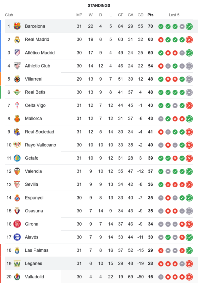 ส่วน เลกาเนส ที่ยังคงดิ้นรนหนีตกชั้น ต้องออกไปเยือน มายอร์ก้า วันที่ 19 เมษายน เวลา 23:30 น. ก่อนจะเปิดบ้านรับมือ คิโรน่า ในวันที่ 25 เมษายน เวลา 00:00 น. สองเกมนี้ถือเป็นนัดชี้เป็นชี้ตายในการอยู่รอด ซึ่งแฟนบอลสามารถติดตาม ตารางบอล และลุ้นผลแบบเรียลไทม์ได้ที่ บ้านกีฬา