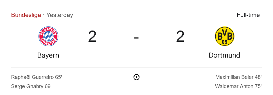 จาก : ผลบอลสด บุนเดสลีกา 2025 ระหว่าง บาเยิร์น มิวนิค 2-2 โบรุสเซีย ดอร์ทมุนด์ วันนี้ 12/4/68 – บ้านกีฬา