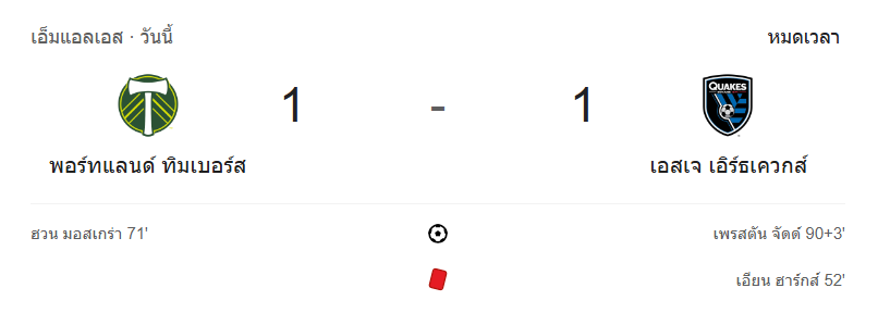 - หมดเวลา: พอร์ตแลนด์ ทิมเบอร์ส 1-1 ซาน โฮเซ่ เอิร์ธเควกส์