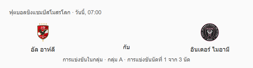 ผลบอลสด ฟีฟ่าคลับเวิลด์คัพ ระหว่าง เอล อาห์ลี vs อินเตอร์ ไมอามี ซีเอฟ วันนี้ 15/6/68 ดูบอลย้อนหลัง คลิปไฮไลท์ ดูบอล ฟีฟ่าคลับเวิลด์คัพ