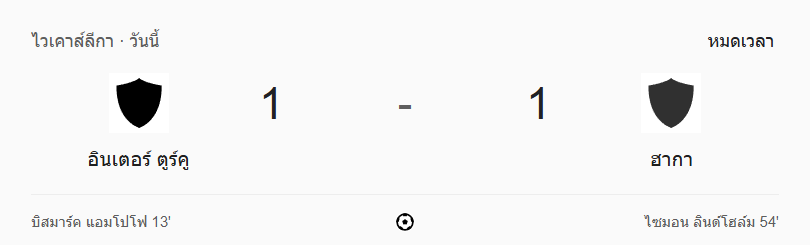 - หมดเวลาการแข่งขัน: อินเตอร์ ตูร์คู 1-1 ฮาก้า