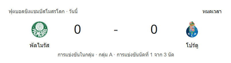 - นาทีที่ 90+5: หมดเวลาการแข่งขัน! พัลไมรัส 0-0 ปอร์โต้