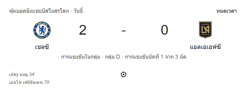- นาทีที่ 93: ชนคาน! Pedro Neto (เชลซี) ยิงไกลด้วยซ้าย บอลชนคาน Eddie Segura (LAFC) ยิงไกลแต่ Sánchez (เชลซี) เซฟอีก