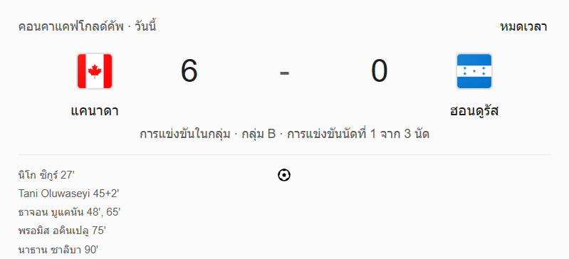 - หมดเวลา:แคนาดา 6-0 ฮอนดูรัส