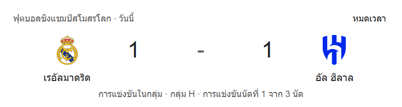 - ครบ 100 นาที: หมดเวลาการแข่งขัน เรอัล มาดริด 1-1 อัล ฮิลาล
